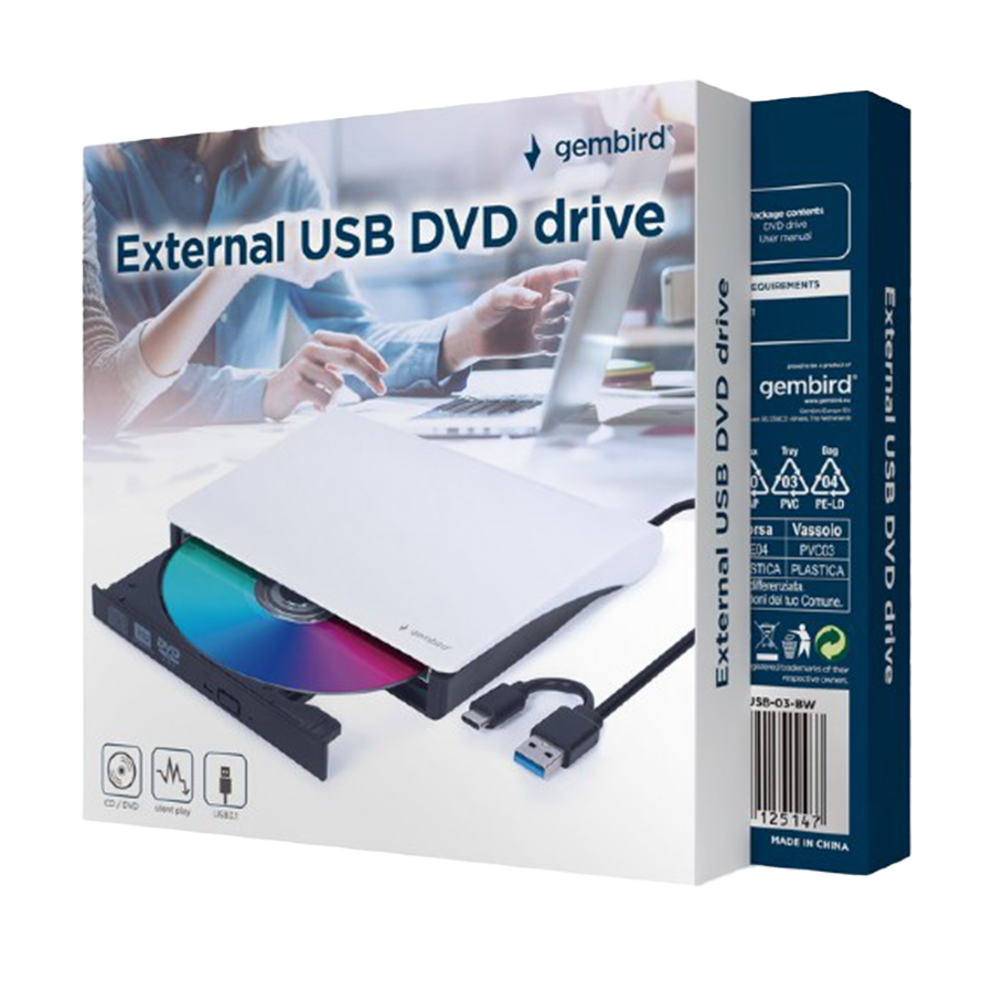 EXT.DVD RW GEMBIRD, USB+Type-C, USB 3.1 Gen. 1, DVD-USB-031-BW