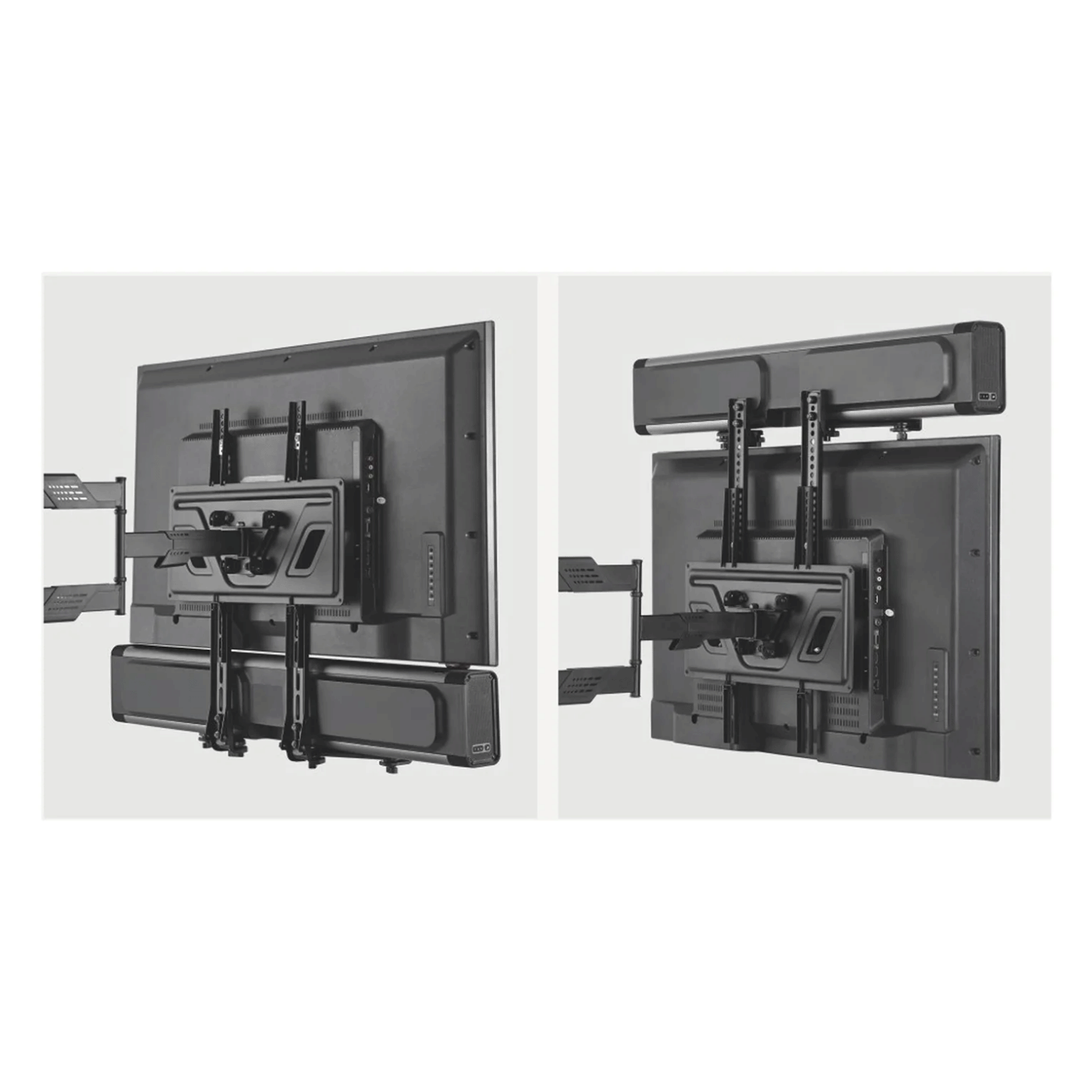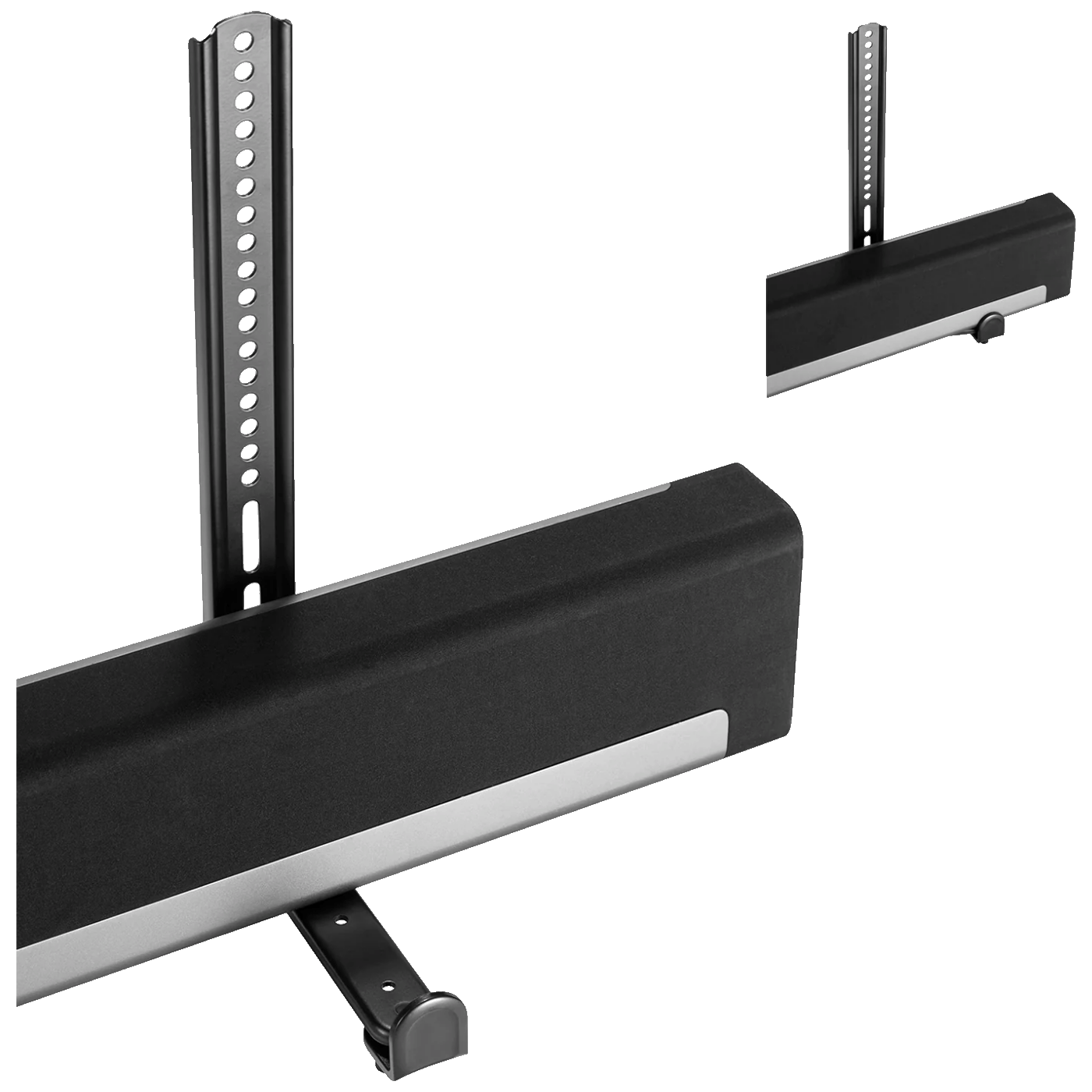 Univerzalni nosač za soundbar omogućava montažu vašeg zvučnika ispod ili iznad televizora, bez bušenja dodatnih rupa u zidu. Idealno rješenje za uredan i efikasan izgled multimedijalnog sistema.