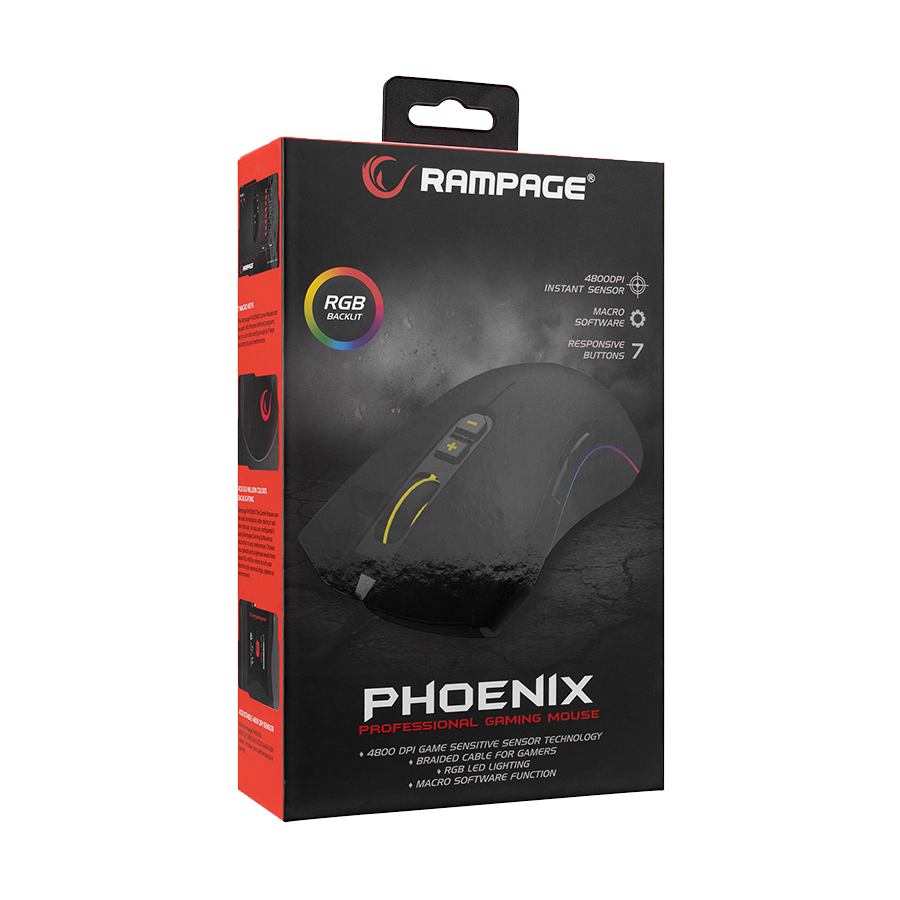 Miš gaming RAMPAGE SMX-R22 PhoenIX V2 Black, 7 key RGB 12800DPI, 31393