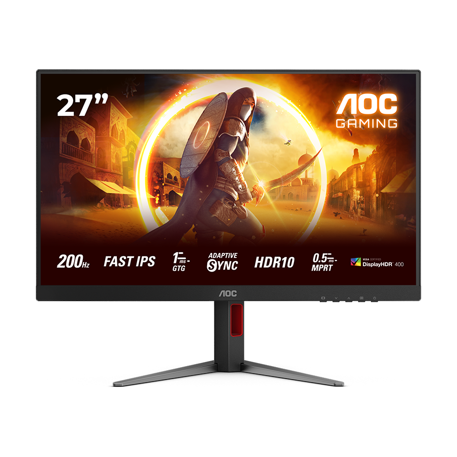 AOC Gaming Monitor 27G4HA 27” 200Hz Fast IPS, 1920×1080 FHD, 0.5ms MPRT / 1ms GtG, 1000:1, 178/178, Adaptive Sync / G-Sync Compatible, HDR10, 2xHDMI 2.0 / DP 1.4 / Audio Out, 3-sides frameless, Black-Red, Full Ergo, 3y