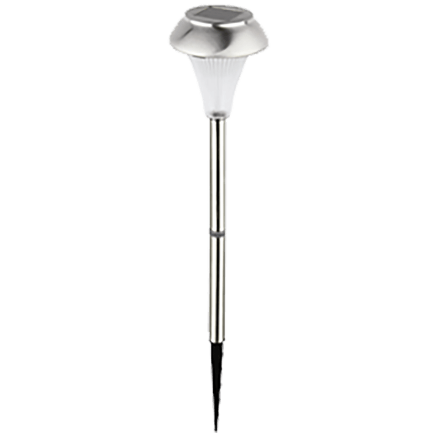 Solarna vrtna LED lampa, automatsko uključivanje / isključivanje, ugrađena solarna ćelija i punjač za bateriju, zamjenjiva AA NI-Mh baterija 1,2V / 100 mAh, otporna na vremenske uvjete, izvor svjetlosti 1 x LED, dimenzije D 10.5 x 37.5 cm, materijal izrade nehrđajući čelik