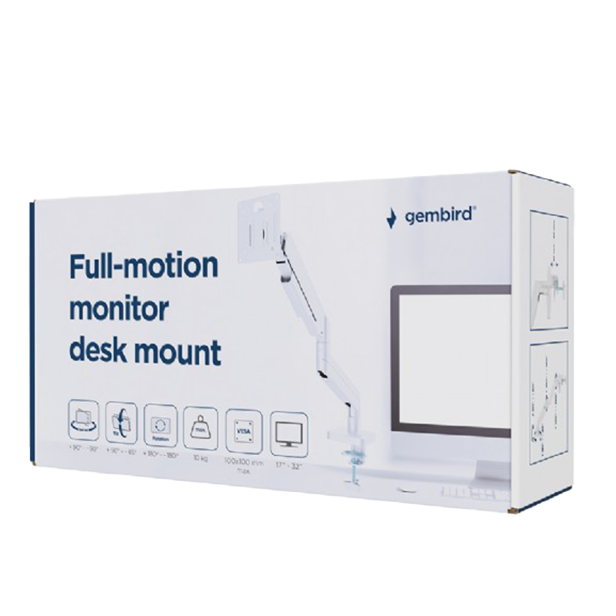 NOSAČ ZA MONITOR GEMBIRD MA-DA1-04-W, montaža na stol, (tilting, swivel), 17”-32”, up to 10 kg, white