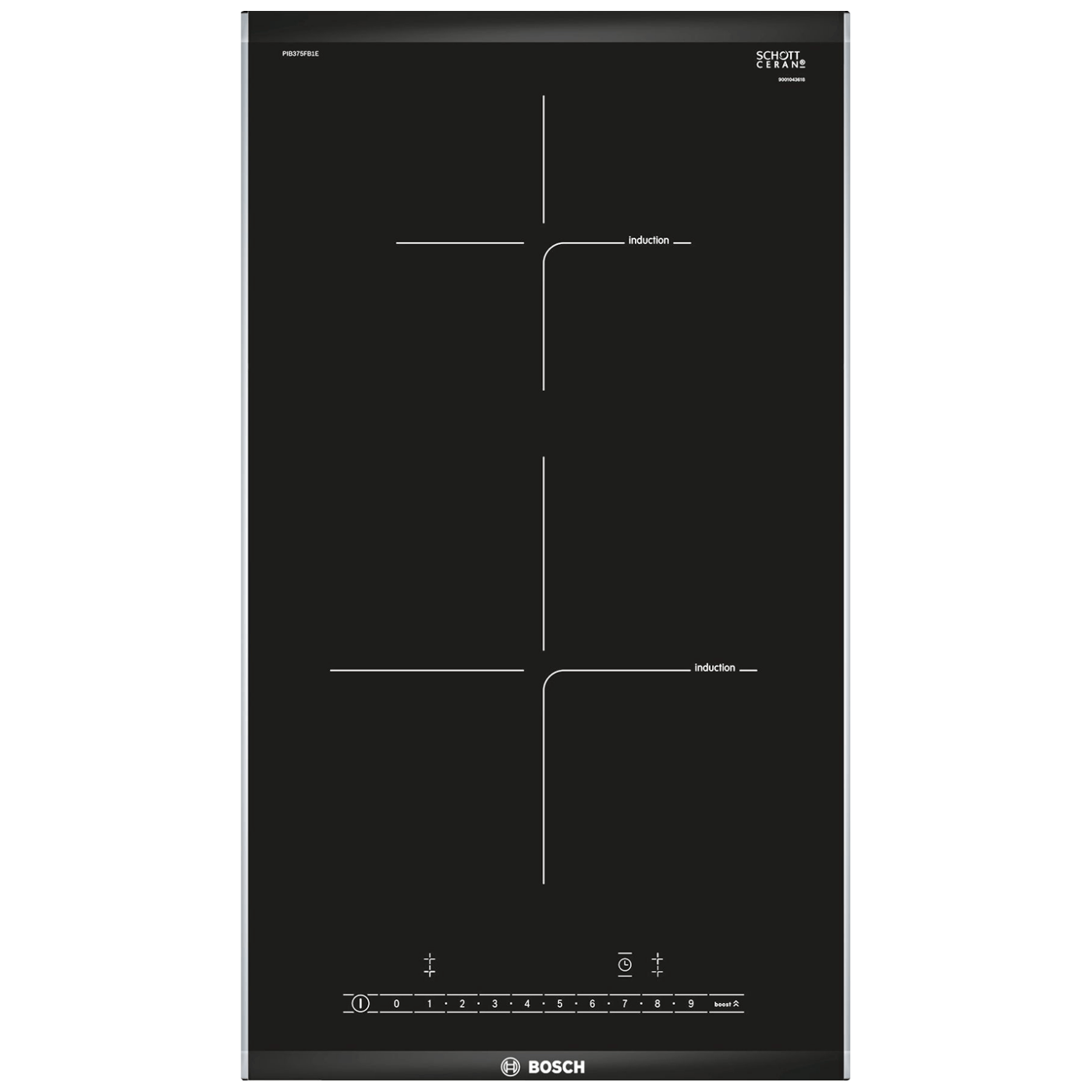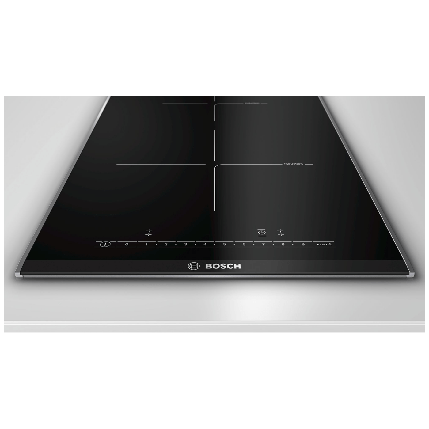 Ugradbena indukcijska ploča za kuhanje Serie 6, priključna snaga 3700 W, izbrušeni prednji rub, ukrasne letvice sa strane, upravljanje na dodir, podešavanje snage u 17 stupnjeva, digitalni zaslon TopControl, QuickStart funkcija, ReStart funkcija, Elektronički programski sat s funkcijom isključivanja i opomenom za svako polje za kuhanje, brojač vremena kuhanja, prikaz potrošnje energije, PowerBoost funkcija, zaštita kod brisanja, prepoznavanje veličine dna posude, sigurnosno isključivanje, dječija sigurnosna brava, digitalni dvostupanjski indikator preostale topline za svako polje za kuhanje, indikator uključivanja, glavni prekidač.