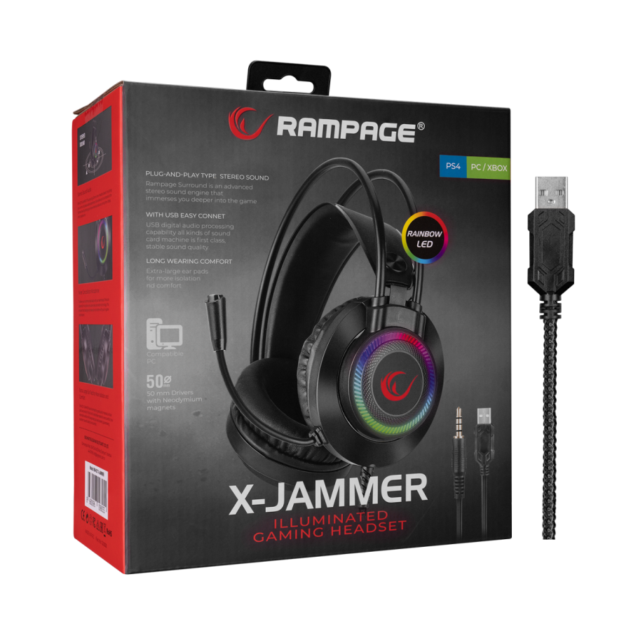 Slušalice sa mikrofonom gaming RAMPAGE RM-K27 X-JAMMER Rainbow RGB LED