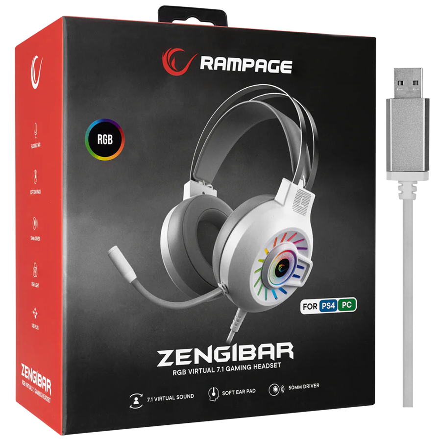Slušalice sa mikrofonom gaming RAMPAGE RM-K44 ZENGIBAR White 7.1 Surround RGB Light Effect