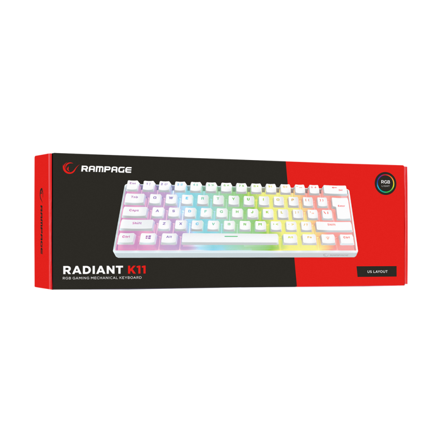 Rampage RADIANT K11 bijela tip-C veza RGB puding tipke US Layout Plavi prekidač Gaming tastatura