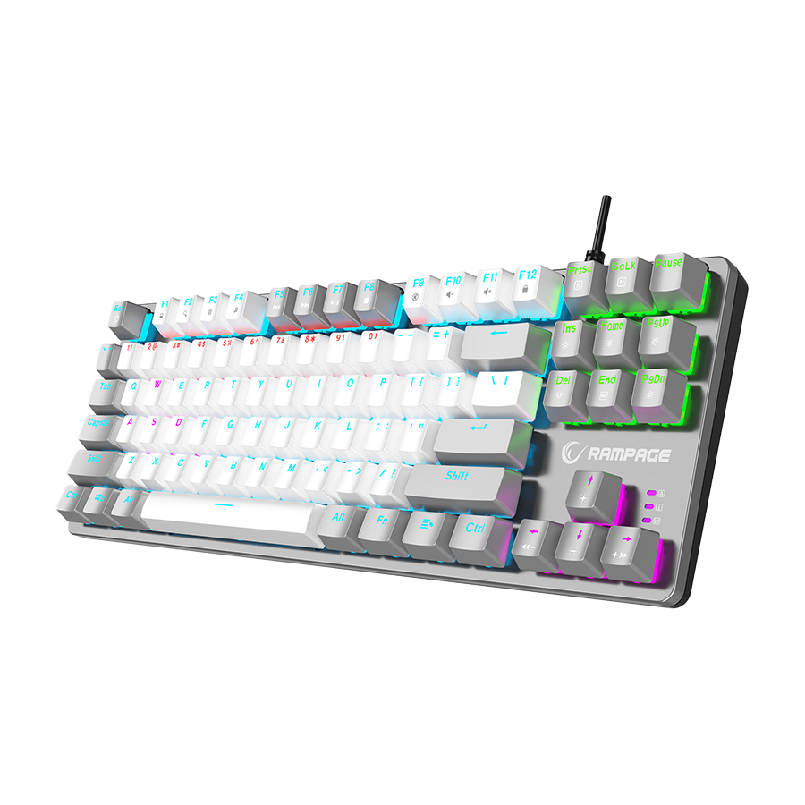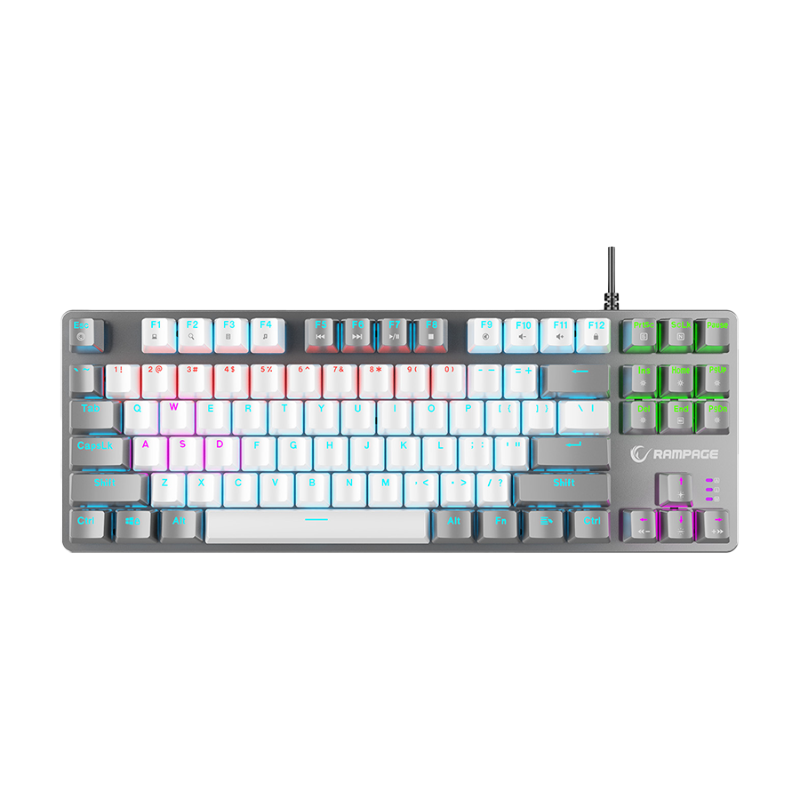 Tastatura gaming RAMPAGE SNUG K14 White/Gray Blue Switch Mechanical Gaming Keyboard ENGLISH Layout English Rainbow TKL, 41851