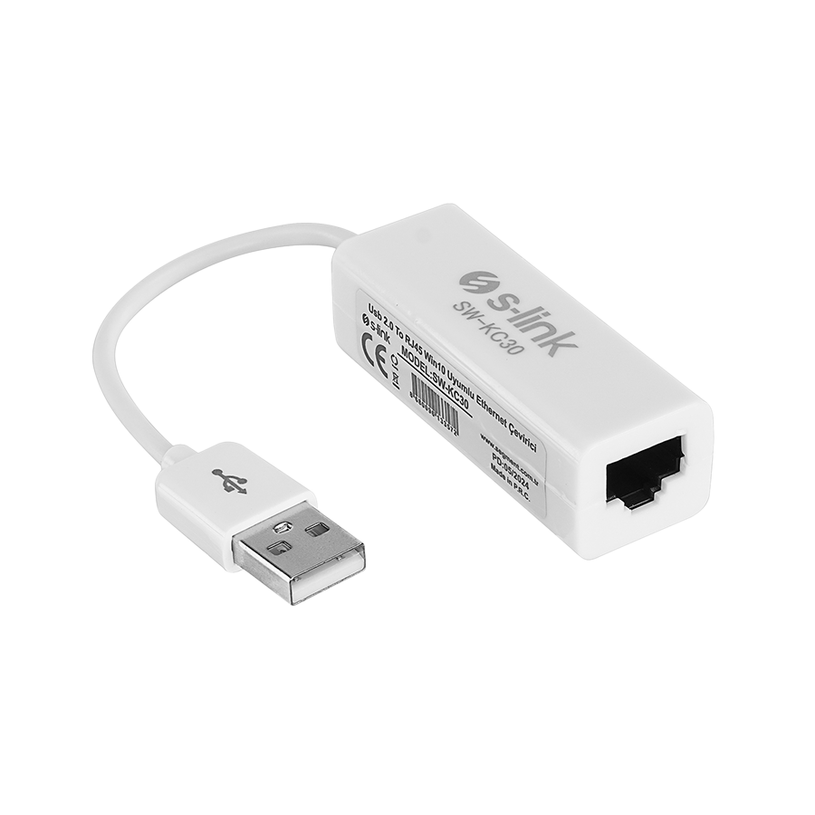 USB to LAN Ethernet adapter converter USB A plug/RJ45, S-Link SW-KC30, 40460